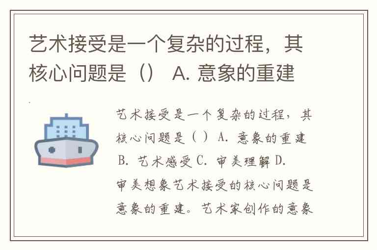 艺术接受是一个复杂的过程,其核心问题是() A. 意象的重建 B. 艺术感受 C. 审美理解 D. 审美想象