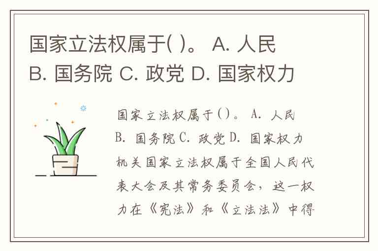国家立法权属于( )。 A. 人民 B. 国务院 C. 政党 D. 国家权力机关