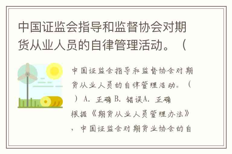 中国证监会指导和监督协会对期货从业人员的自律管理活动。( ) A. 正确 B. 错误