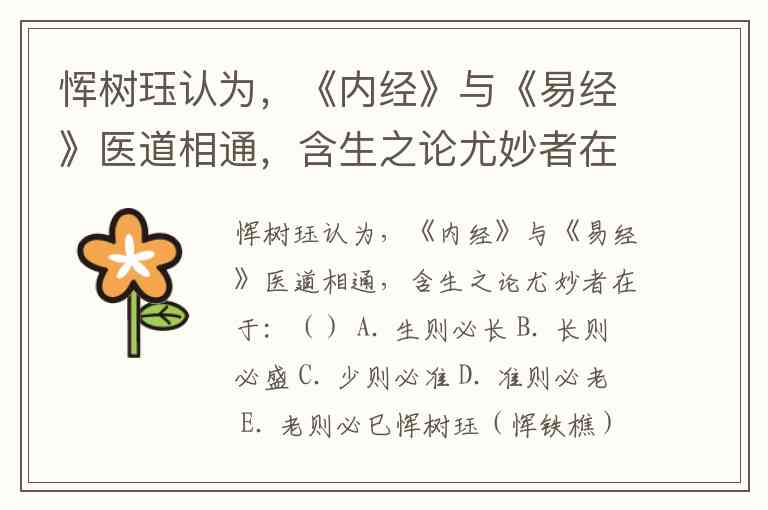 恽树珏认为,《内经》与《易经》医道相通,含生之论尤妙者在于:() A. 生则必长 B. 长则必盛 C. 少则必准 D. 准则必老 E. 老则必巳