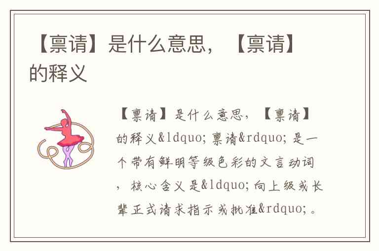 “禀请”是一个带有鲜明等级色彩的文言动词,核心含义是“向上级或长辈正式请求指示或批准”。它由“禀”(汇报、陈述)和“请”(请求)组成,体现了传统社会严格的尊卑秩序和文书规范。