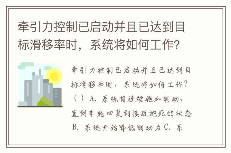 牵引力控制已启动并且已达到目标滑移率时,系统将如何工作?() A. 系统将连续施加制动,直到车轮回复到接近抱死的状态 B. 系统开始降低制动力 C. 系统停止增加制动压力,并将其保持在当前水平 D. 系统通知发动机ECU,小幅增加发动机输出