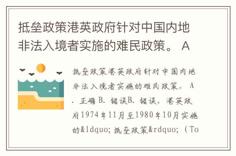抵垒政策港英政府针对中国内地非法入境者实施的难民政策。 A. 正确 B. 错误