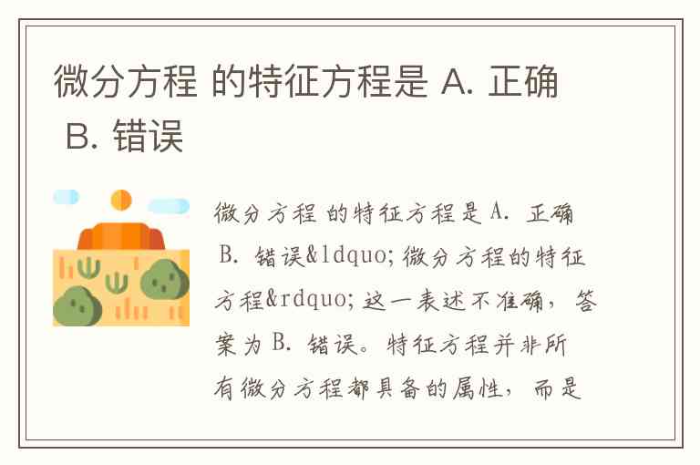 “微分方程的特征方程”这一表述不准确,答案为 B. 错误。