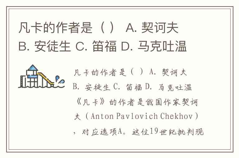 凡卡的作者是( ) A. 契诃夫 B. 安徒生 C. 笛福 D. 马克吐温
