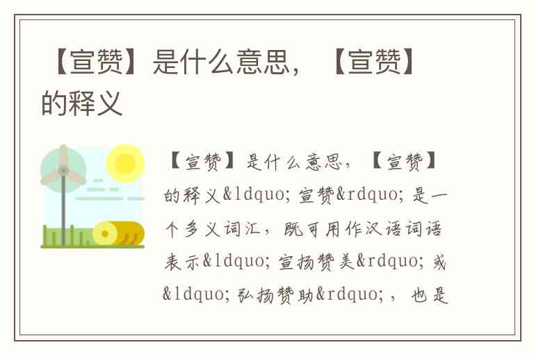 “宣赞”是一个多义词汇,既可用作汉语词语表示“宣扬赞美”或“弘扬赞助”,也是古典名著《水浒传》中著名人物的名字。