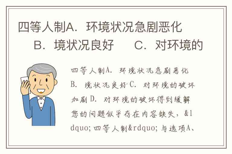 四等人制A.环境状况急剧恶化 B.境状况良好 C.对环境的破坏加剧 D.对环境的破坏得到缓解