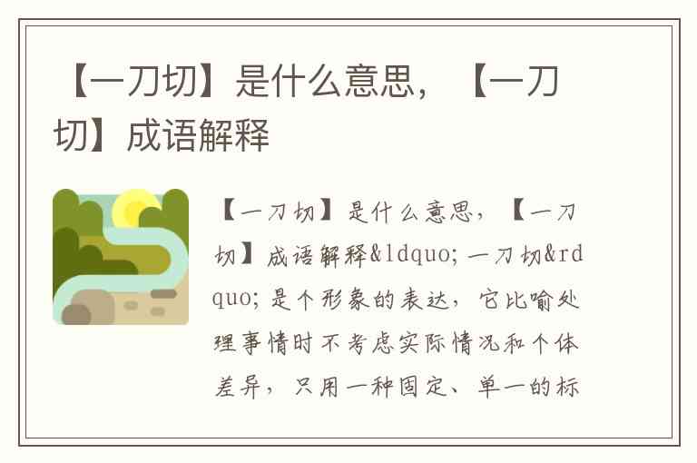 【一刀切】是什么意思,【一刀切】成语解释