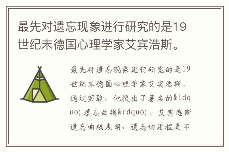 最先对遗忘现象进行研究的是19世纪末德国心理学家艾宾浩斯。通过实验,他提出了著名的“遗忘曲线”。艾宾浩斯遗忘曲线表明,遗忘的进程是不平衡的,遗忘进程呈现“先慢后快再慢”的趋势,随后便趋于平稳。