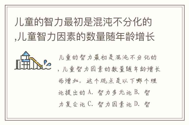 儿童的智力最初是混沌不分化的,儿童智力因素的数量随年龄增长而增加。这个观点是以下哪个理论提出的 A. 智力多元论 B. 智力复合论 C. 智力因素论 D. 智力分化论