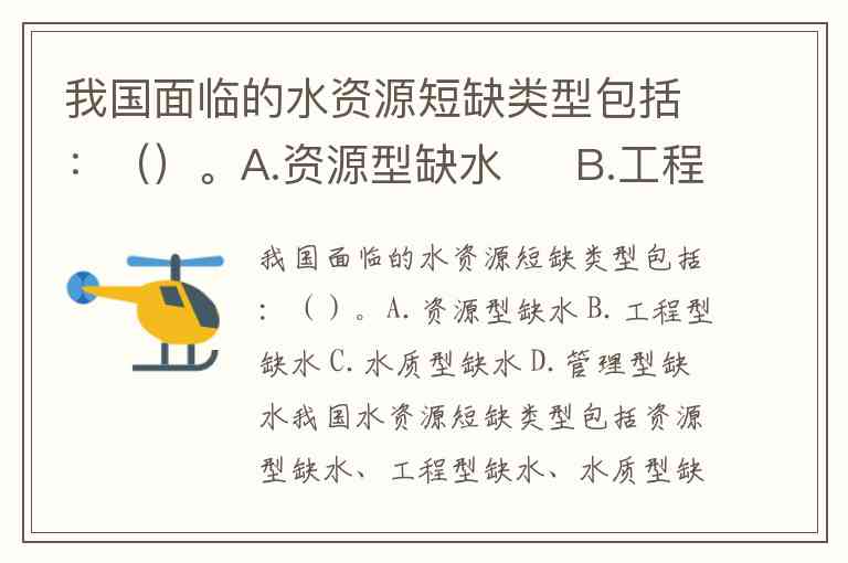 我国面临的水资源短缺类型包括:()。A.资源型缺水 B.工程型缺水 C.水质型缺水 D.管理型缺水