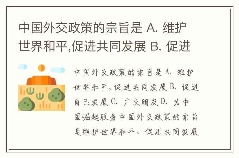 中国外交政策的宗旨是 A. 维护世界和平,促进共同发展 B. 促进自己发展 C. 广交朋友 D. 为中国崛起服务