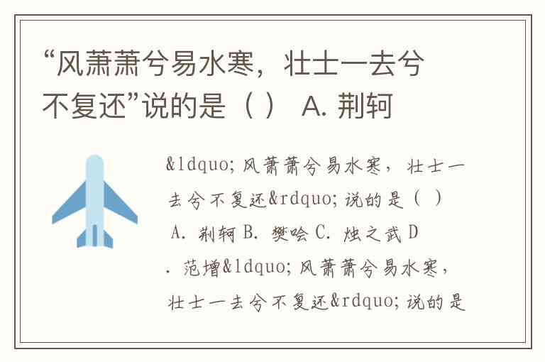 “风萧萧兮易水寒,壮士一去兮不复还”说的是( ) A. 荆轲 B. 樊哙 C. 烛之武 D. 范增