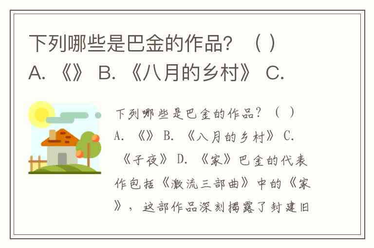 下列哪些是巴金的作品?( ) A. 《》 B. 《八月的乡村》 C. 《子夜》 D. 《家》