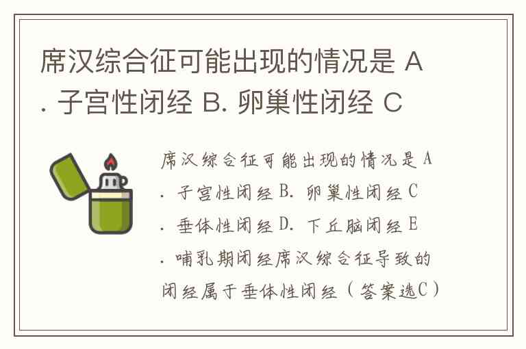 席汉综合征可能出现的情况是 A. 子宫性闭经 B. 卵巢性闭经 C. 垂体性闭经 D. 下丘脑闭经 E. 哺乳期闭经