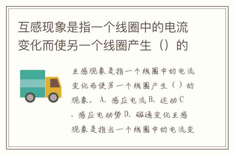 互感现象是指一个线圈中的电流变化而使另一个线圈产生()的现象。 A. 感应电流 B. 运动 C. 感应电动势 D. 磁通变化