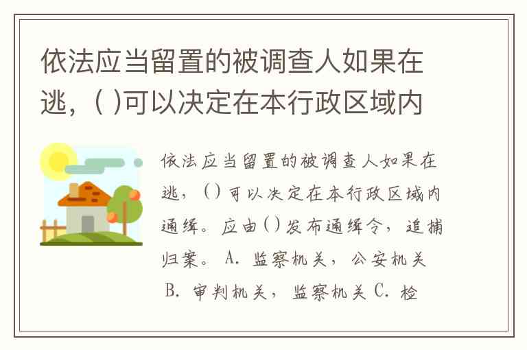 依法应当留置的被调查人如果在逃,( )可以决定在本行政区域内通缉。应由( )发布通缉令,追捕归案。 A. 监察机关,公安机关 B. 审判机关,监察机关 C. 检察机关,监察机关 D. 检察机关,公安机关