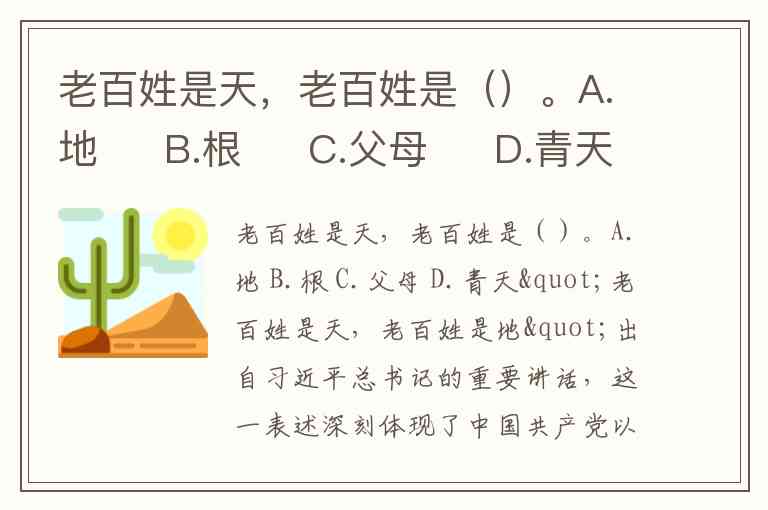 老百姓是天,老百姓是()。A.地 B.根 C.父母 D.青天