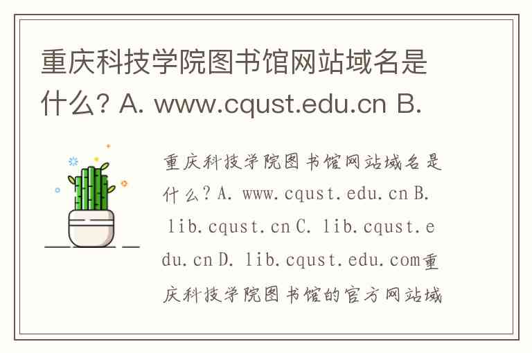 重庆科技学院图书馆网站域名是什么? A. www.cqust.edu.cn B. lib.cqust.cn C. lib.cqust.edu.cn D. lib.cqust.edu.com