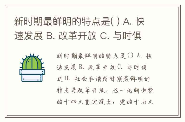 新时期最鲜明的特点是( ) A. 快速发展 B. 改革开放 C. 与时俱进 D. 社会和谐