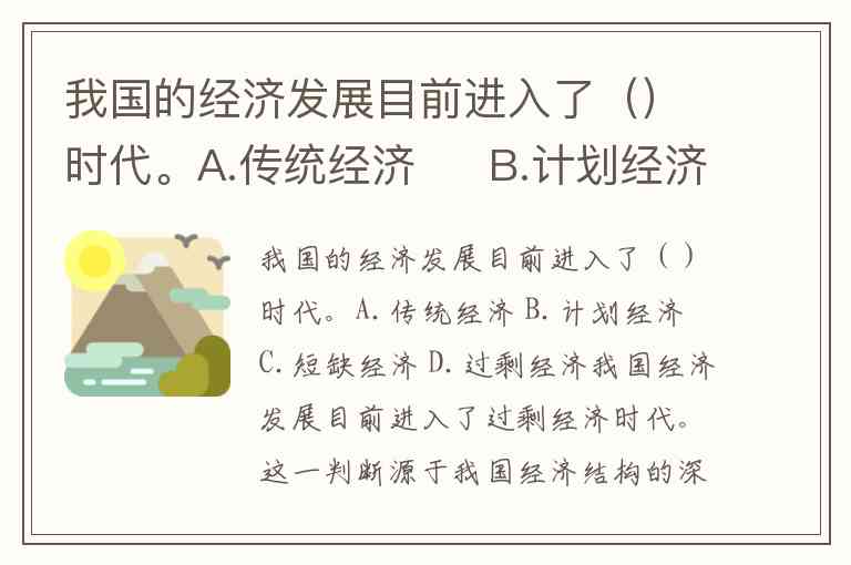 我国的经济发展目前进入了()时代。A.传统经济 B.计划经济 C.短缺经济 D.过剩经济
