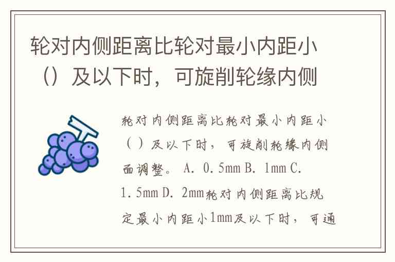 轮对内侧距离比轮对最小内距小()及以下时,可旋削轮缘内侧面调整。 A. 0.5mm B. lmm C. 1.5mm D. 2mm