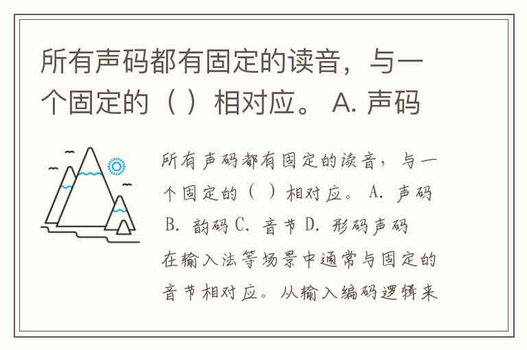 所有声码都有固定的读音,与一个固定的( )相对应。 A. 声码 B. 韵码 C. 音节 D. 形码