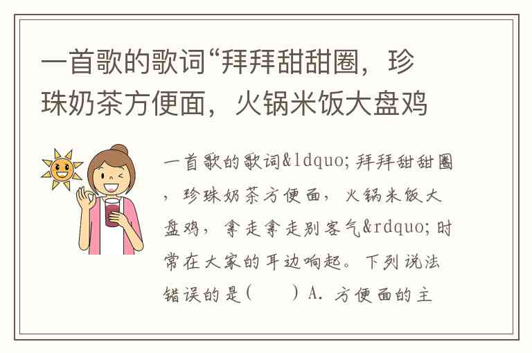 一首歌的歌词“拜拜甜甜圈,珍珠奶茶方便面,火锅米饭大盘鸡,拿走拿走别客气”时常在大家的耳边响起。下列说法错误的是( ) A. 方便面的主要成分是淀粉,初步消化是在口腔中通过唾液淀粉酶的作用消化成麦芽糖 B. 大盘鸡里的蛋白质在胃里被胃蛋白酶初步消化,进而在小肠中被彻底分解成氨基酸 C. “燃烧卡路里”主要是指细胞中的线粒体通过有氧呼吸释放热量 D. 奶茶营养单一,经常饮用会造成青少年消瘦
