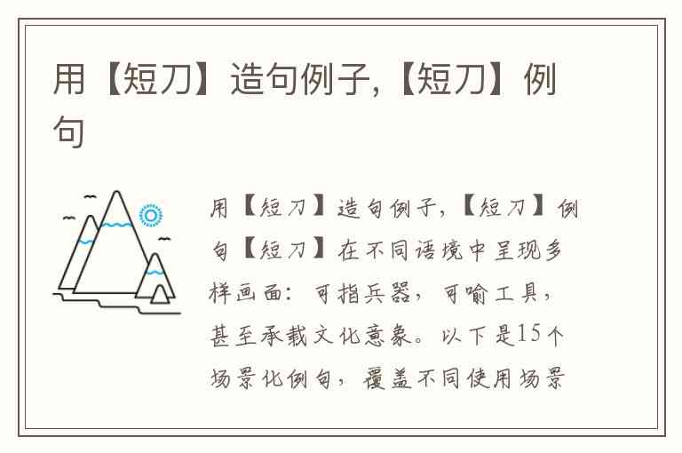 【短刀】在不同语境中呈现多样画面:可指兵器,可喻工具,甚至承载文化意象。以下是15个场景化例句,覆盖不同使用场景: