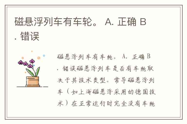 磁悬浮列车有车轮。 A. 正确 B. 错误