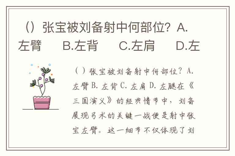 ()张宝被刘备射中何部位?A.左臂 B.左背 C.左肩 D.左腿