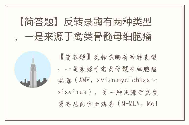 【简答题】反转录酶有两种类型,一是来源于禽类骨髓母细胞瘤病毒(AMV,avian myeloblastosisvirus),另一种来源于鼠类莫洛尼氏白血病毒(M-MLV,Moloney murine leukemia virus),它们之间有什么不同?