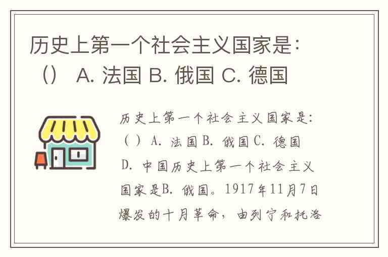 历史上第一个社会主义国家是:() A. 法国 B. 俄国 C. 德国 D. 中国
