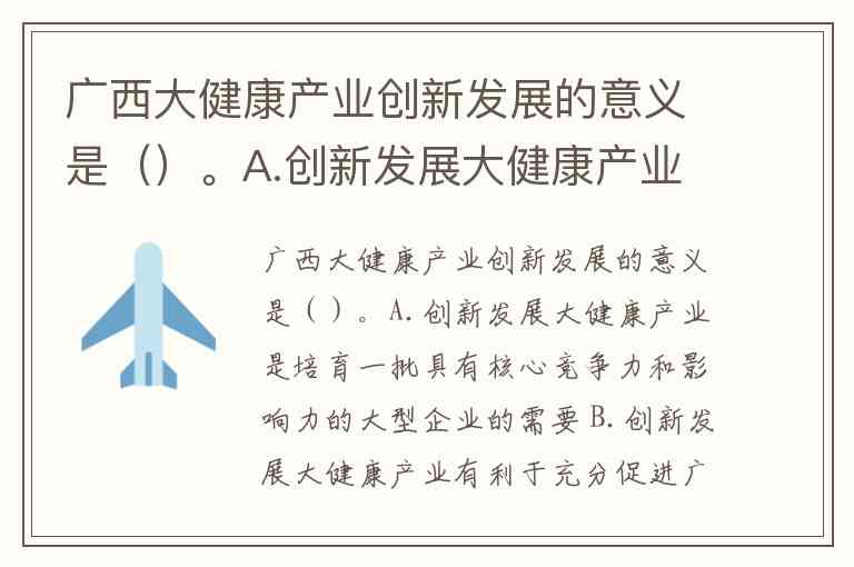 广西大健康产业创新发展的意义是()。A.创新发展大健康产业是培育一批具有核心竞争力和影响力的大型企业的需要 B.创新发展大健康产业有利于充分促进广西壮瑶等医药的发展 C.创新发展大健康产业是深化广西经济改革的需要 D.创新发展大健康产业有利于充分发挥广西的中药源优势