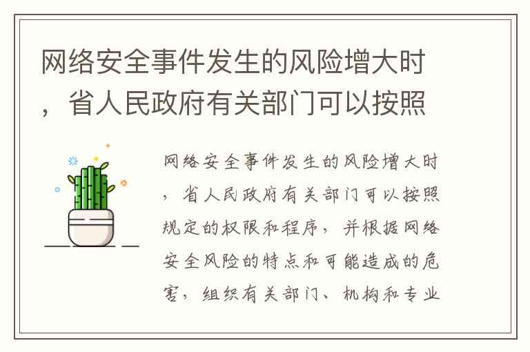 网络安全事件发生的风险增大时,省人民政府有关部门可以按照规定的权限和程序,并根据网络安全风险的特点和可能造成的危害,组织有关部门、机构和专业人员,对网络安全风险信息进行(),预测事件发生的可能性、影响范围和危害程度。A.安全评估 B.分析评估 C.分类整理 D.分级整理