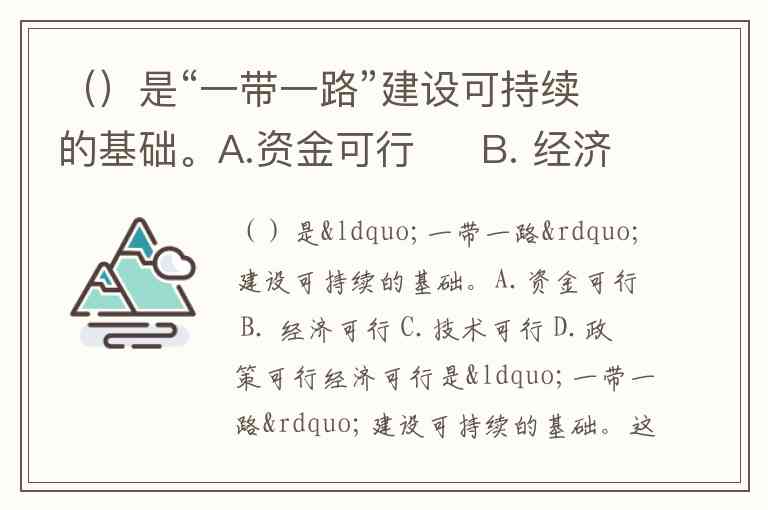 ()是“一带一路”建设可持续的基础。A.资金可行 B. 经济可行 C.技术可行 D.政策可行