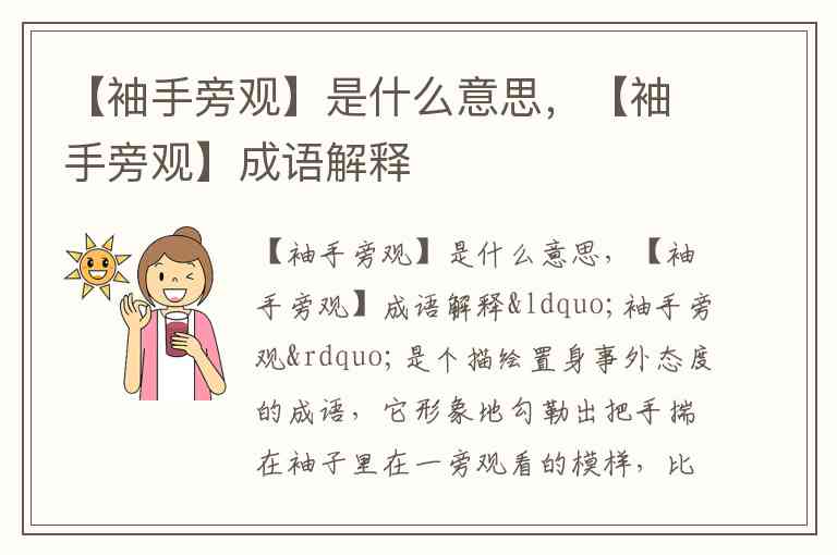 【袖手旁观】是什么意思,【袖手旁观】成语解释