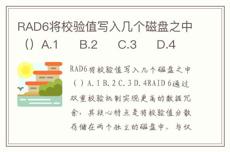 RAD6将校验值写入几个磁盘之中()A.1 B.2 C.3 D.4