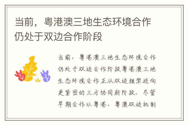 当前,粤港澳三地生态环境合作仍处于双边合作阶段