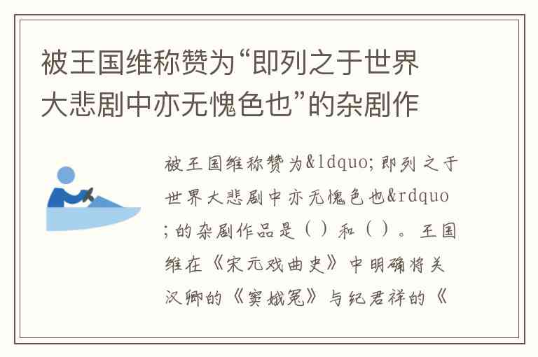 被王国维称赞为“即列之于世界大悲剧中亦无愧色也”的杂剧作品是()和()。