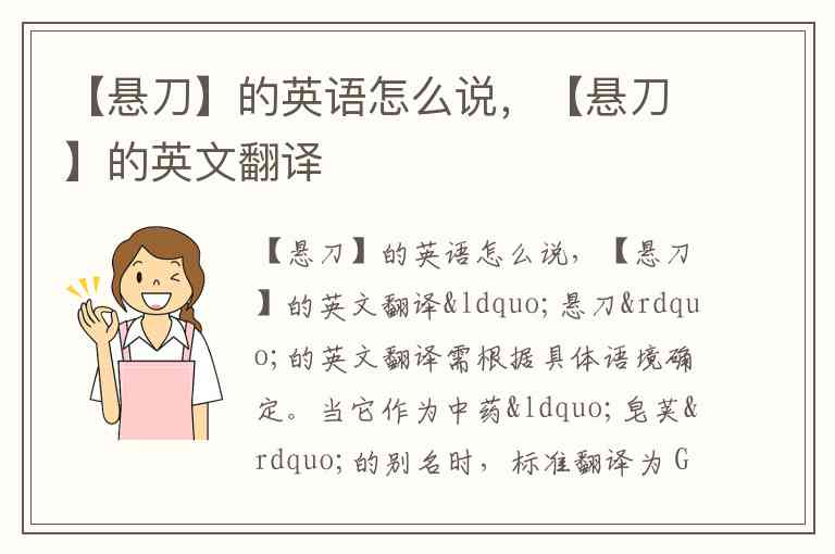 需要注意的是,“悬刀”并非现代标准术语,翻译时需优先明确其具体所指:涉及中药时应采用植物学或药学标准名称,涉及器物时则需描述性翻译。