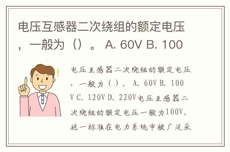 电压互感器二次绕组的额定电压,一般为()。 A. 60V B. 100V C. 120V D. 220V