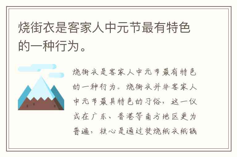 烧街衣是客家人中元节最有特色的一种行为。