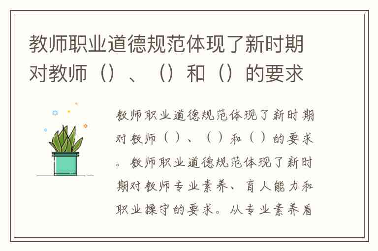 教师职业道德规范体现了新时期对教师()、()和()的要求。