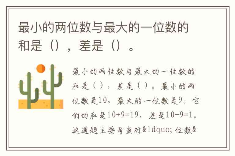 最小的两位数与最大的一位数的和是(),差是()。