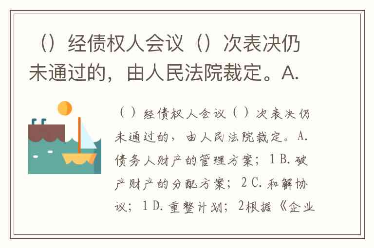()经债权人会议()次表决仍未通过的,由人民法院裁定。A.债务人财产的管理方案;1 B.破产财产的分配方案;2 C.和解协议;1 D.重整计划;2