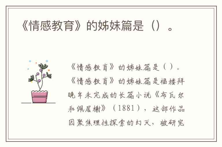 《情感教育》的姊妹篇是福楼拜晚年未完成的长篇小说《布瓦尔和佩居榭》(1881),这部作品因聚焦理性探索的幻灭,被研究者称为"理智教育"。