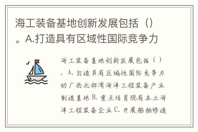 海工装备基地创新发展包括()。A.打造具有区域性国际竞争力的广西北部湾海洋工程装备产业制造基地 B.重点培育现有本土海洋工程装备企业 C.开展船舶修造、内河新型绿色货运船舶、海上多功能双体船的技术研究 D.推动海工装备和北斗卫星导航技术研发与应用示范