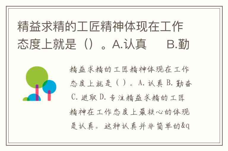精益求精的工匠精神体现在工作态度上就是()。A.认真 B.勤奋 C.进取 D.专注