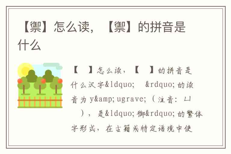 【禦】怎么读,【禦】的拼音是什么